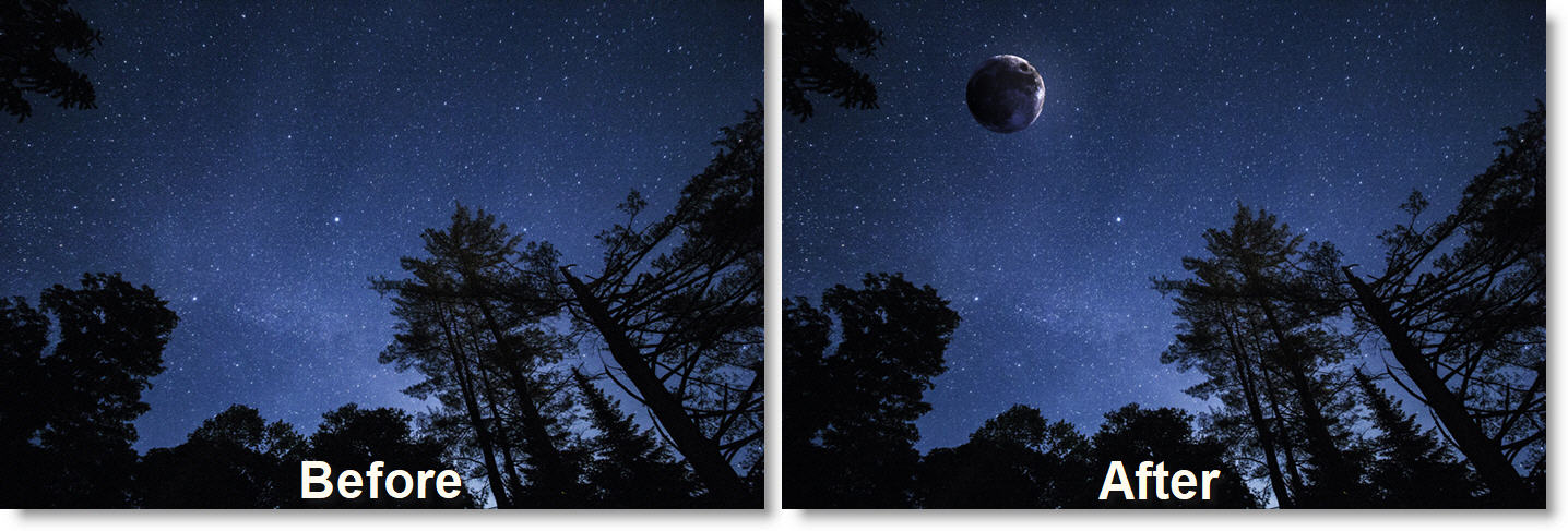 If you want to make a complete sky image with the moon and a colored sky, you can put the moon in a blue sky by setting Sky Color to blue. This will also tint the moon toward the sky color.