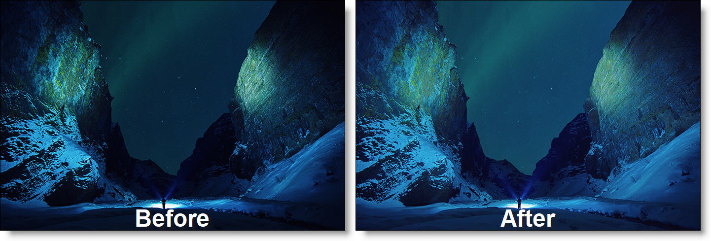Shadows/Highlights lowers contrast evenly throughout the image by brightening shadow areas and darkening highlights. It is useful for correcting dark foreground subjects due to strong backlighting as well as highlights that are slightly washed out.