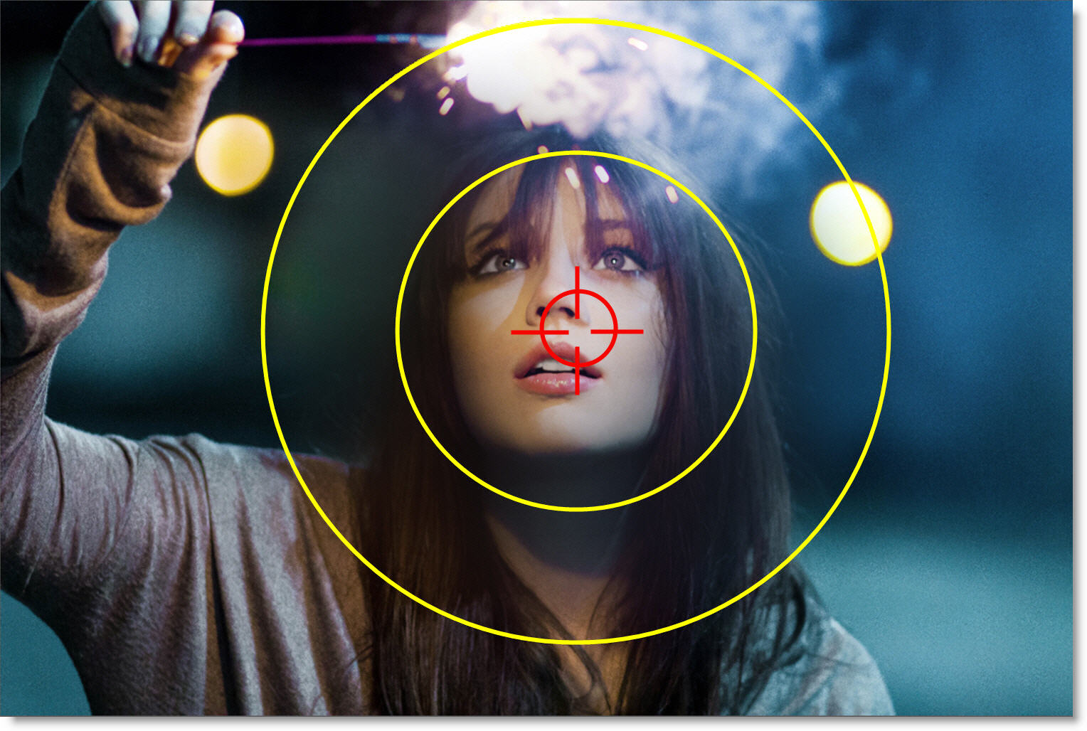 The blurred edge radius is controlled using the outer on-screen circle.