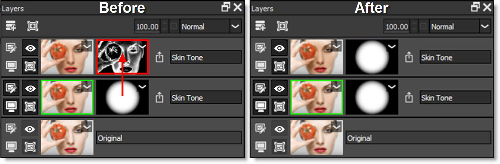 • Photoshop: A layer mask is present.