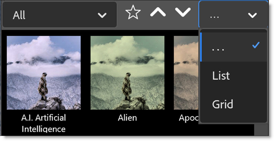 Presets tagged as a favorite display a yellow star at the top right of the preset.